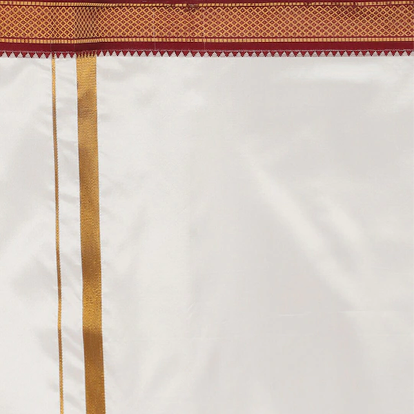 Cream-coloured solid dhoti with gold-coloured border